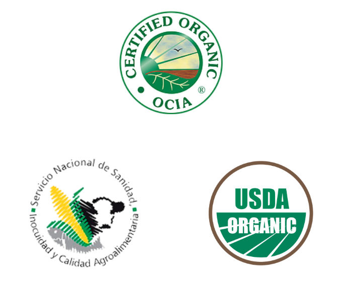 Los productos que ofrecemos son 100% orgánicos, con certificaciones nacionales e internacionales que acreditan su gran calidad.